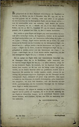 Brief over zegels op huurcontracten, 1824