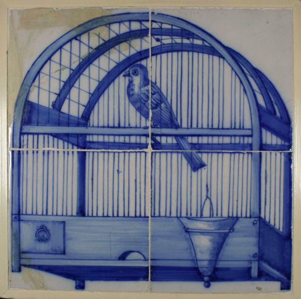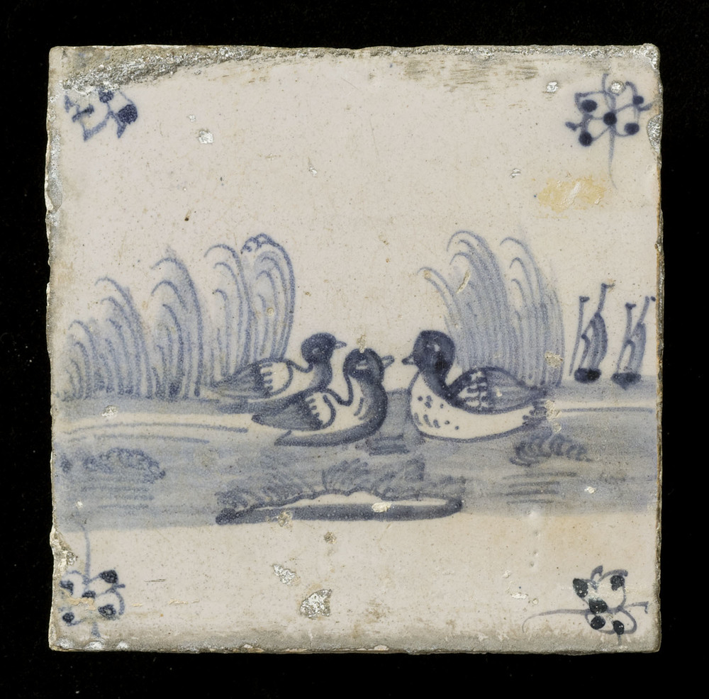 Tegel van keramiek, tinglazuur, voorstellende een vo...