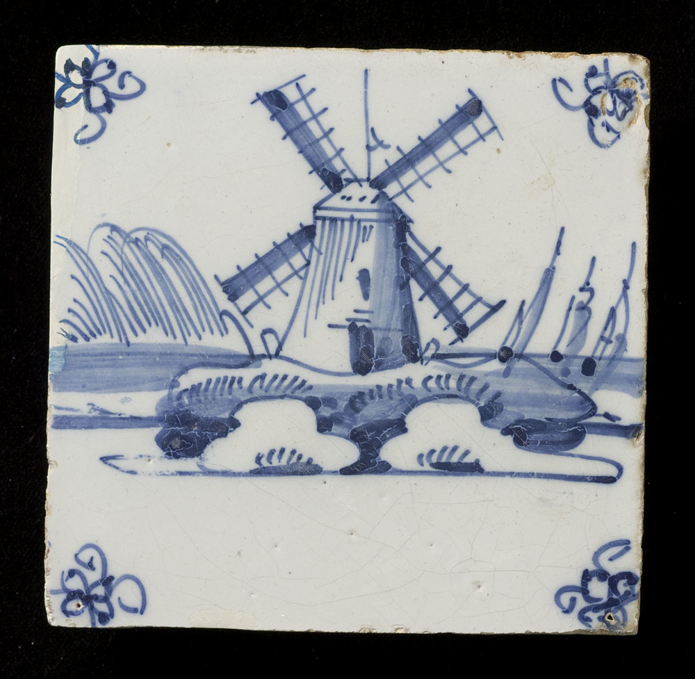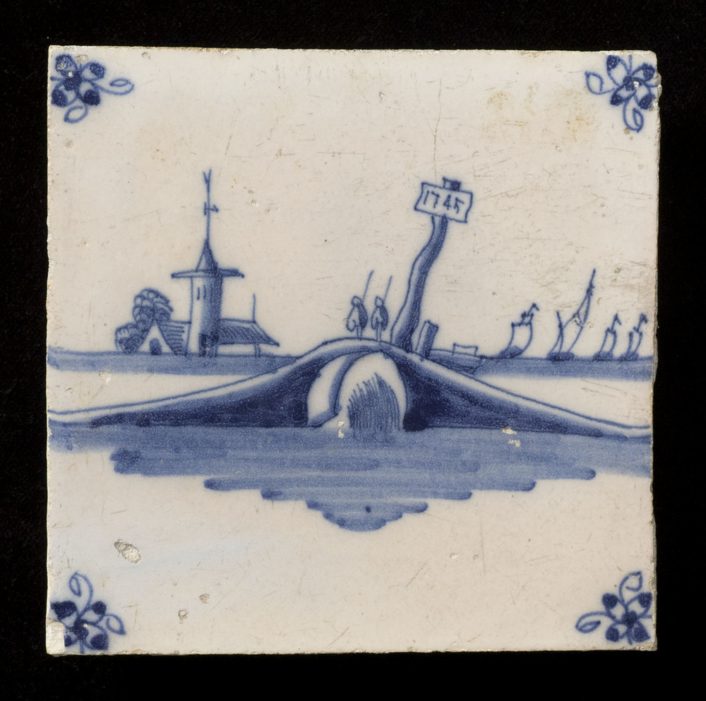 tegel van aardewerk in tinglazuur, voorstellende: la...
