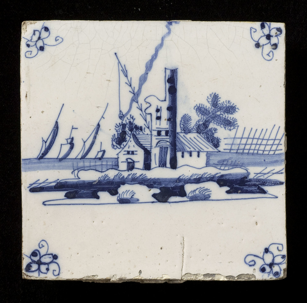 Tegel in tinglazuur, voorstellende landschap ca. 175...