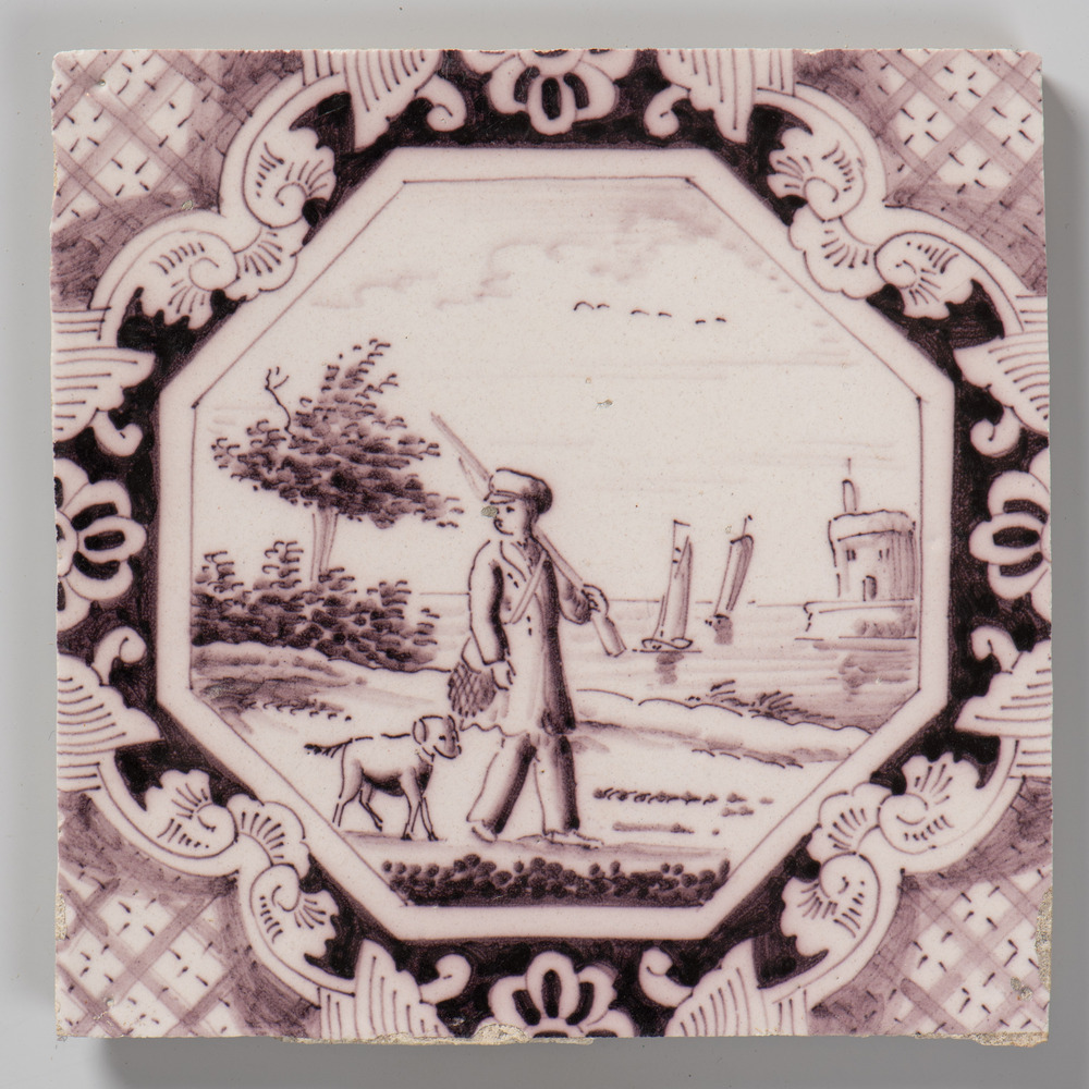 Tableautegel van keramiek, tinglazuur, voorstellende...