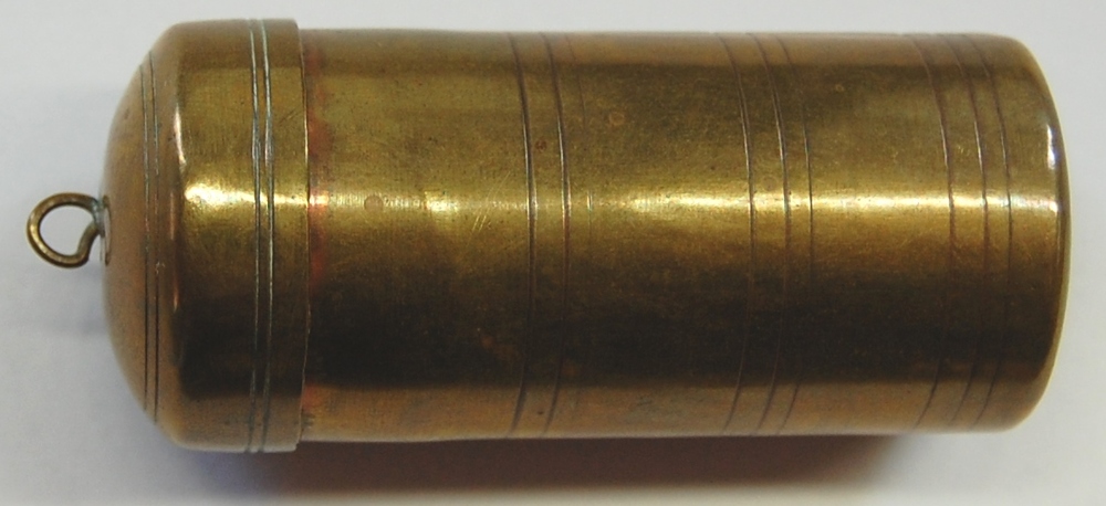 tondeldoos, geelkoper, cylindervormig bol deksel, in...