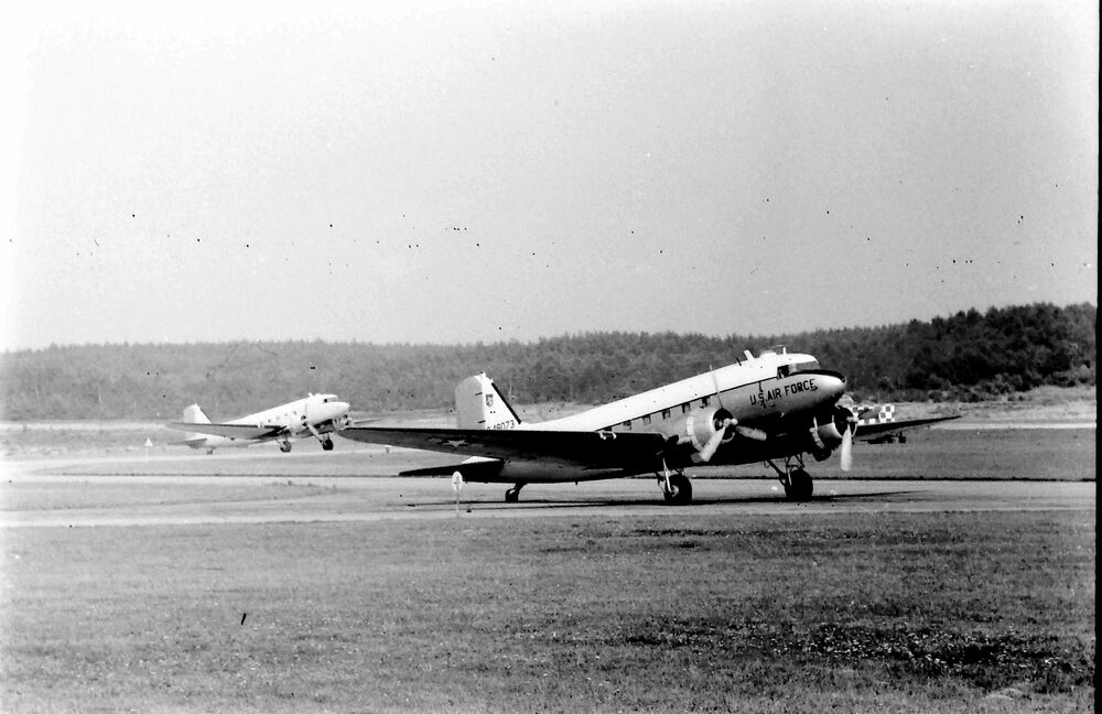 Douglas C-47B USAAF O-48073 en ? op de rolbaan.