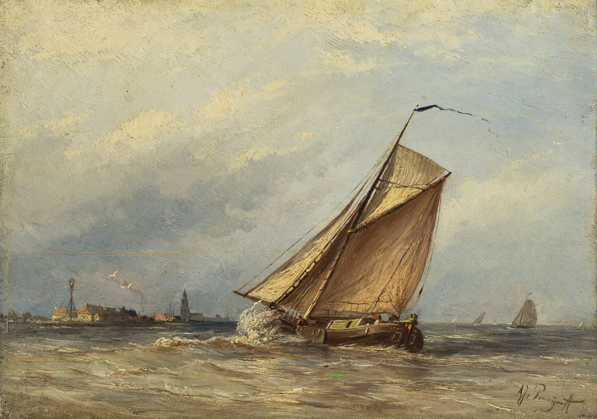 Zeilende tjalk op de voormalige Zuiderzee