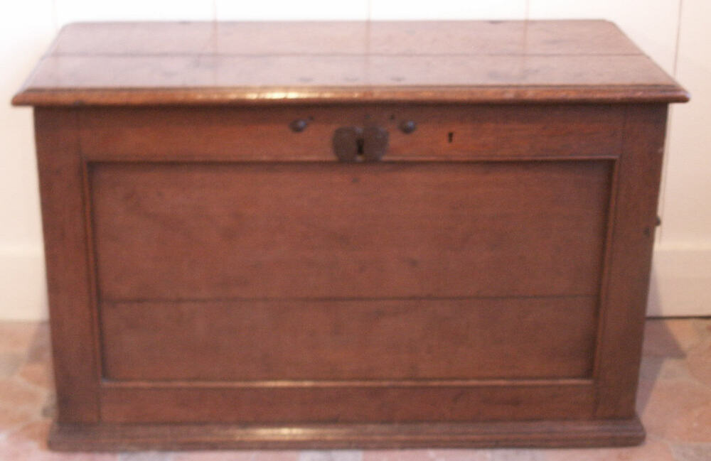 kist van eikenhout met slot, vervaardigd in de 18e eeuw