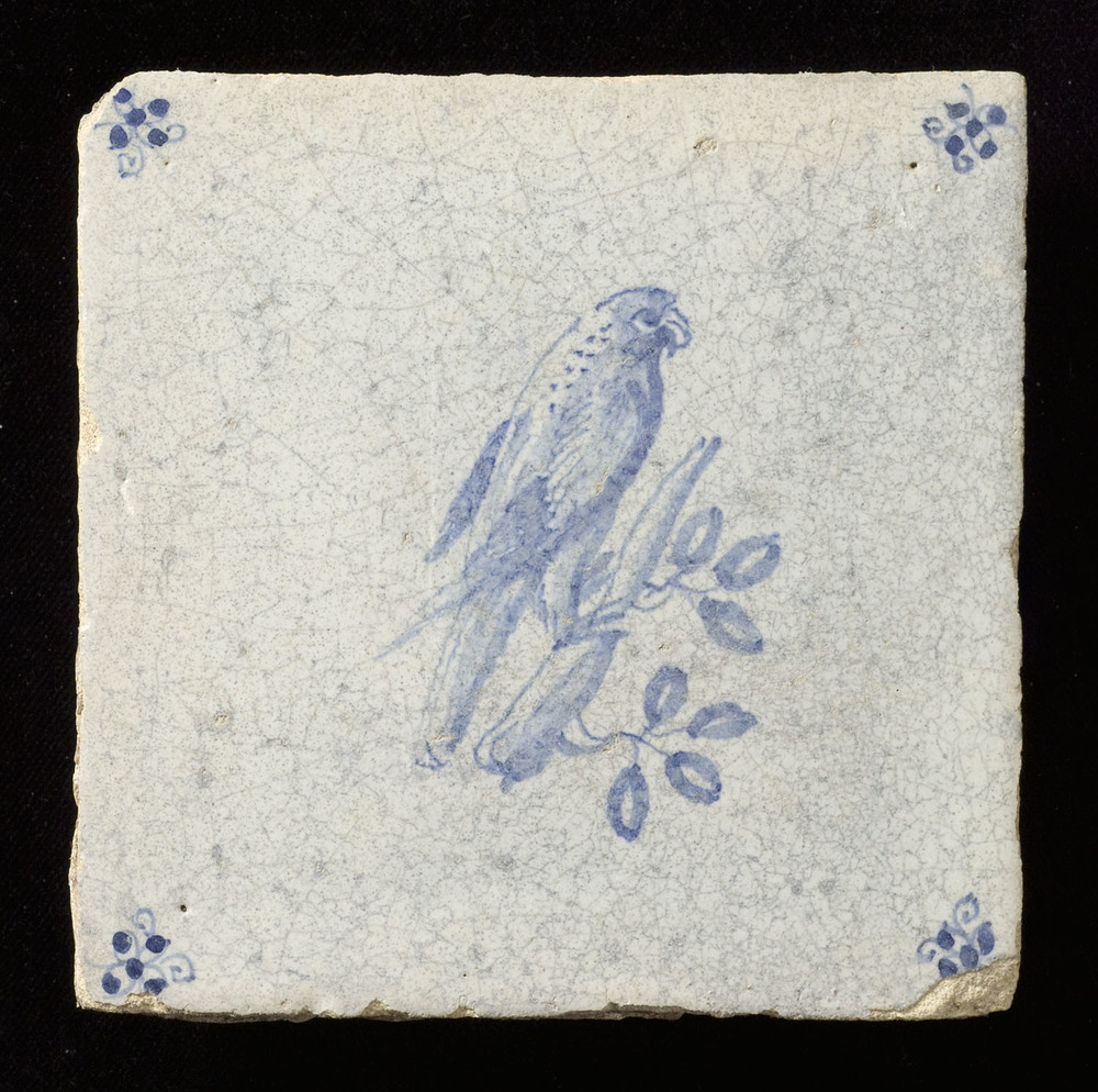 Tegel in tinglazuur, voorstellende vogel gemaakt in ...