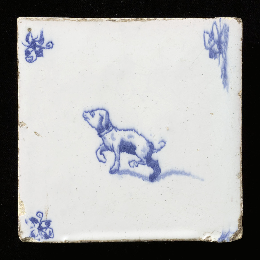 tegel van aardewerk met tinglazuur, voorstellende: h...