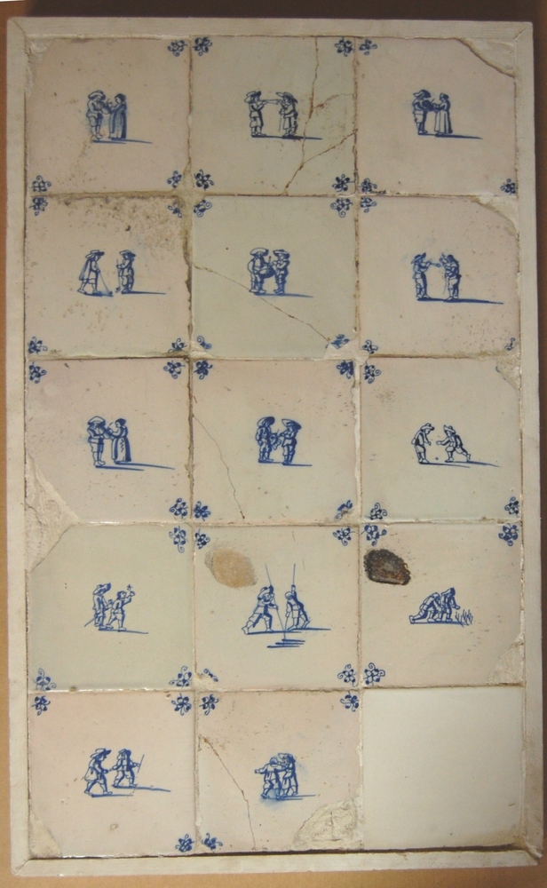tegelveld bestaande uit 15 tegels van aardewerk in b...