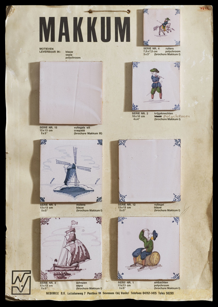Tegel van keramiek, tinglazuur, gemaakt in Makkum do...