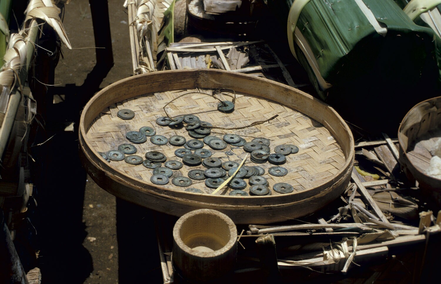 Offerschaal met Chinese munten tijdens de voorbereid...
