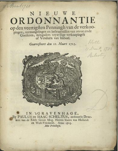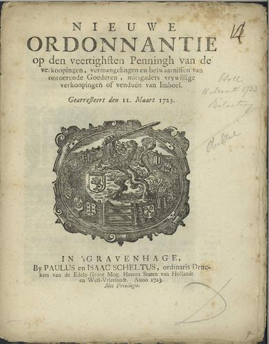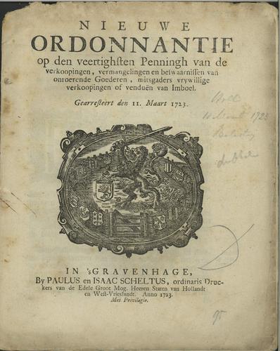 Plakkaat 40e penning van verkopingen en van onroeren...