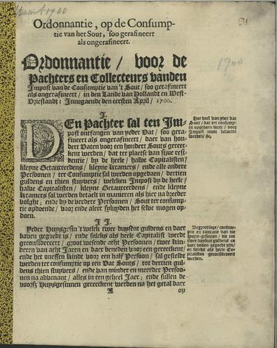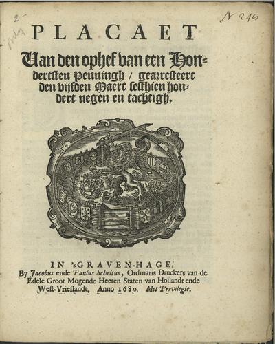 Plakkaat 40e penning van alle onroerende goederen, 1695