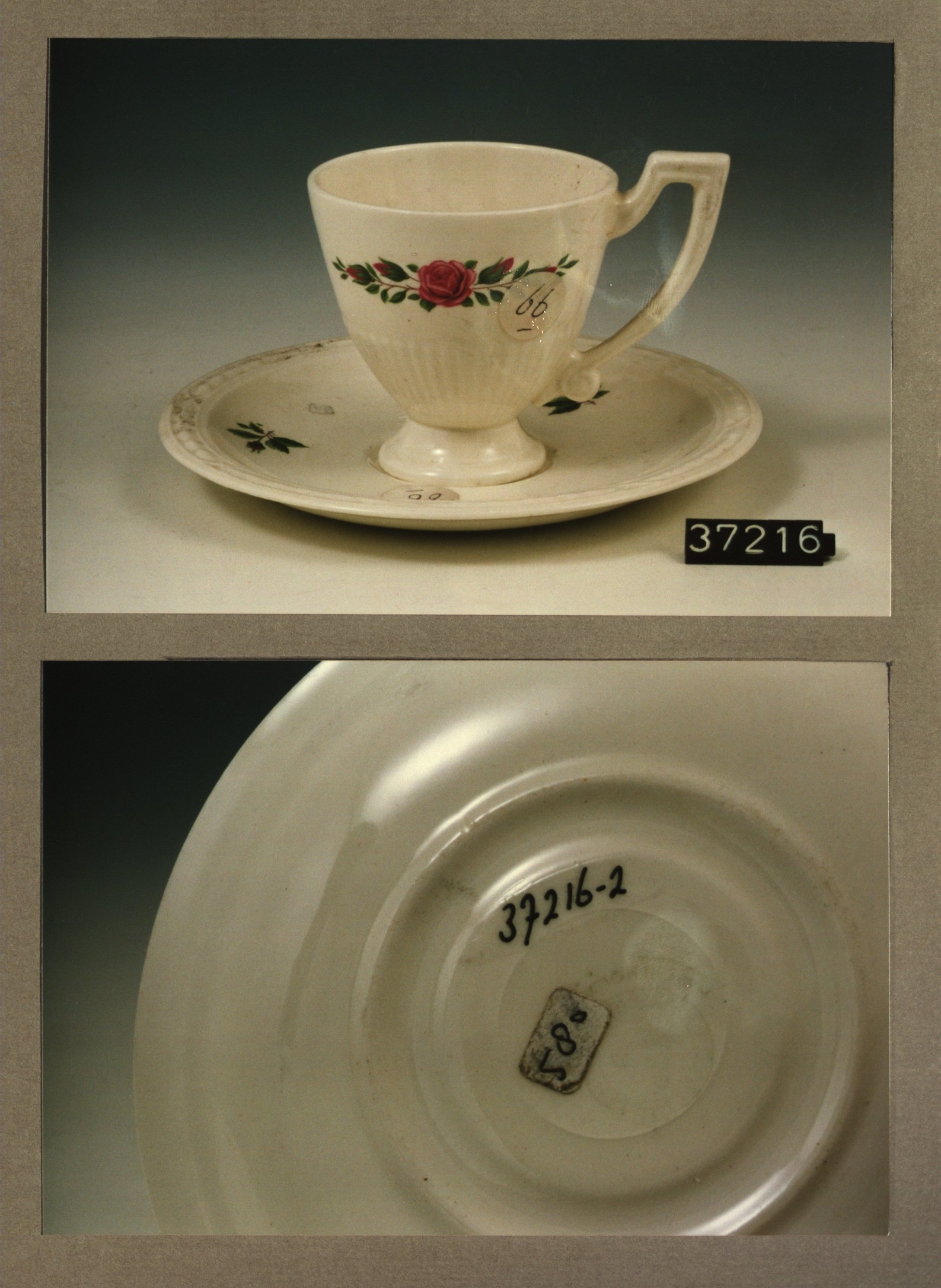 Kop en schotel, model Recamier met decor Roos