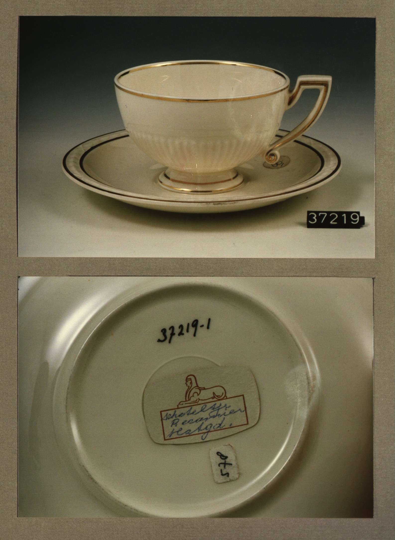 Kop en schotel, model Recamier met decor Goudrand