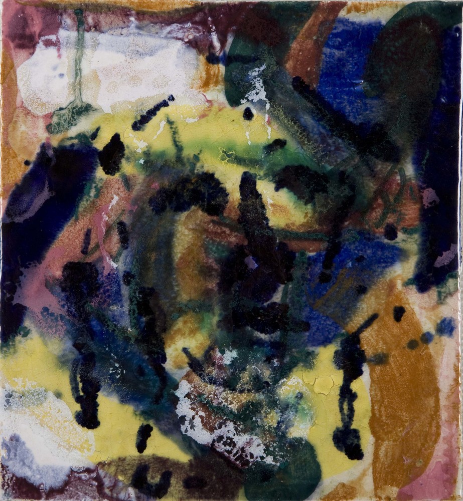 Tegel in cloisonné-techniek, met voorstelling: Koren...