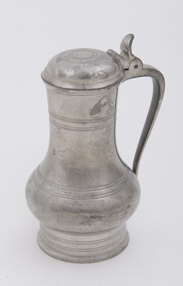 Schenkkan van tin, vervaardigd door Metaalwarenfabri...