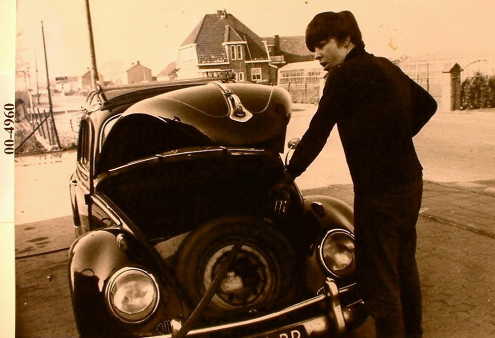 Theo Schut aan het benzine tanken bij het bedrijf va...