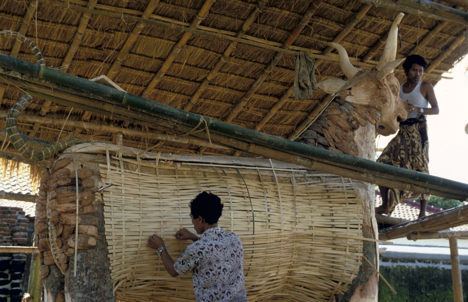 Onderhoud aan een gangsa tijdens de voorbereidingen ...