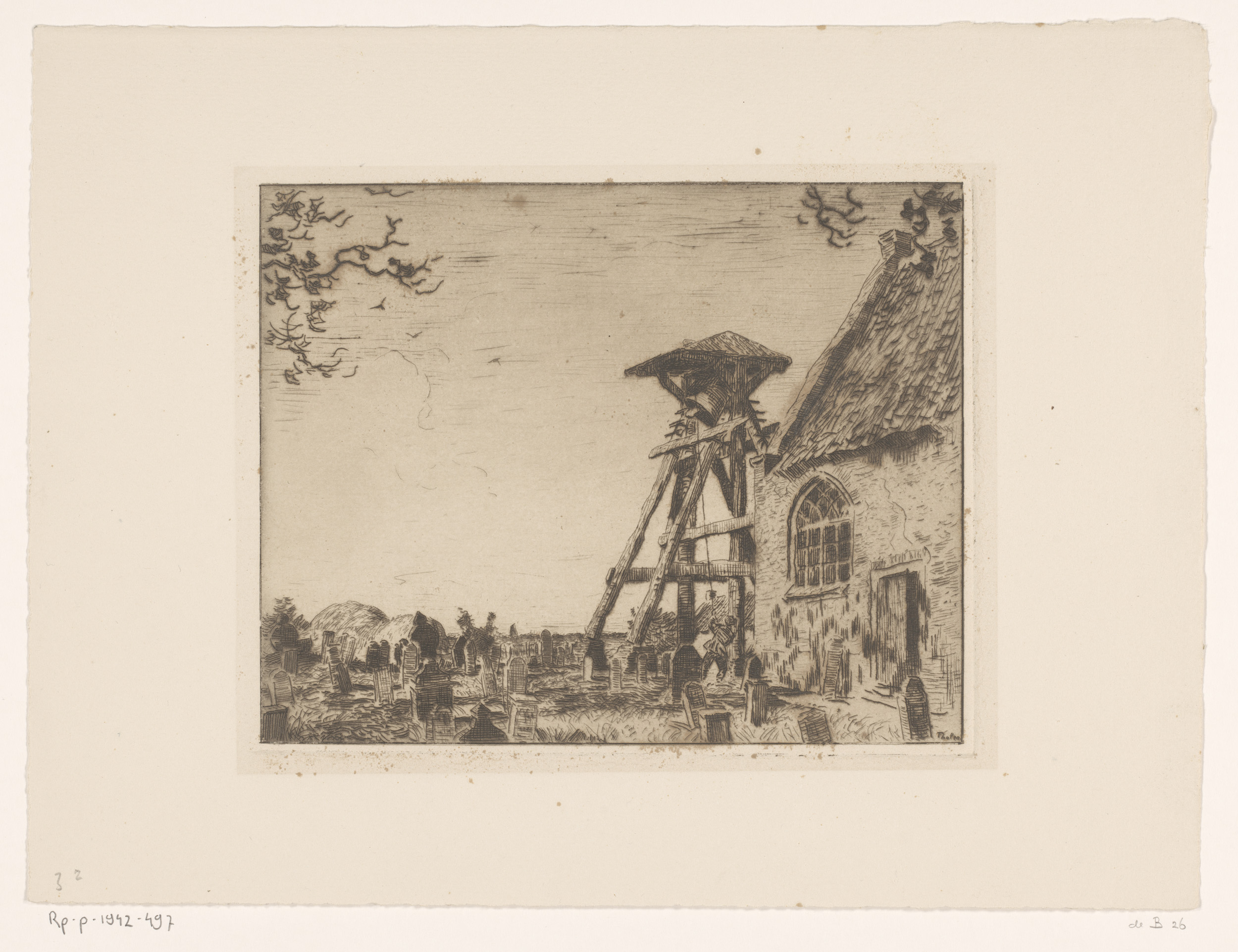Kerk met kerkhof en klokkenstoel