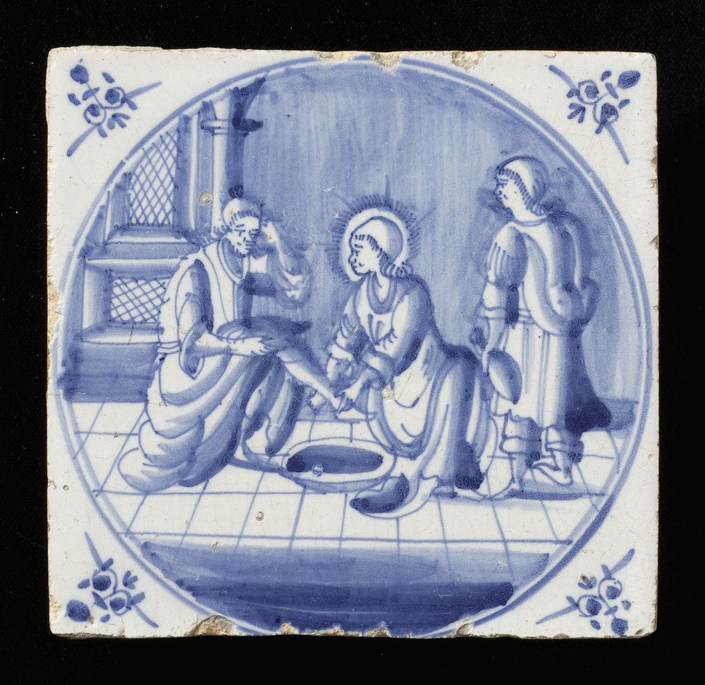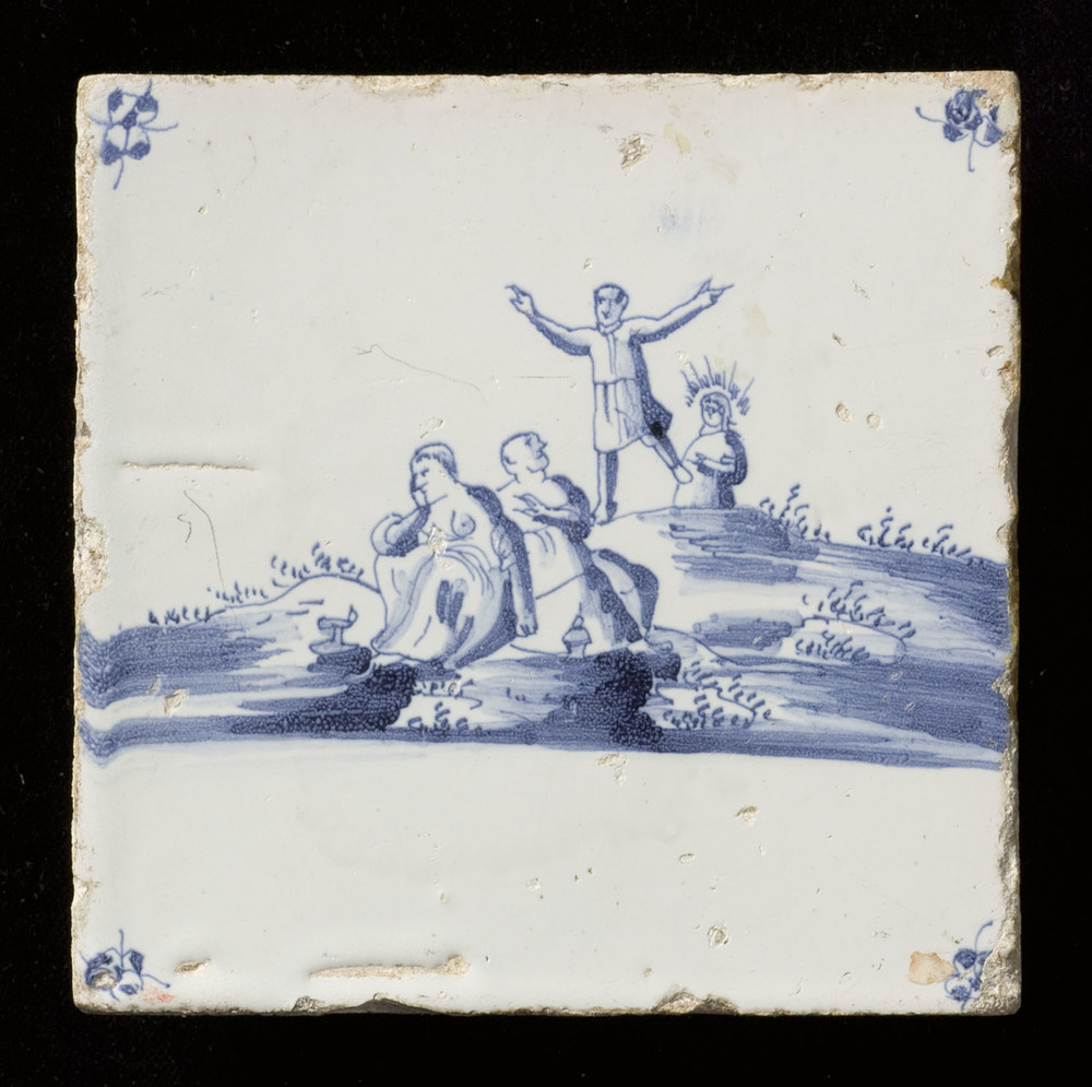 tegel van aardewerk met tinglazuur, voorstellende: h...