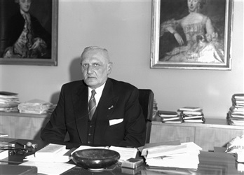 Griffier Helmstrijd in zijn werkkamer in Den Haag, 1967