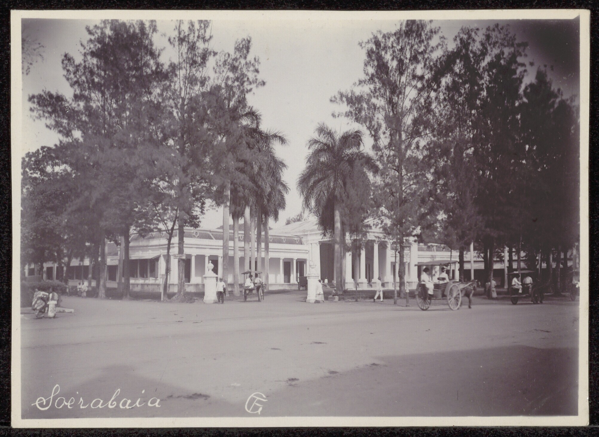 Rijtuigen voor het Paleis van Justitie in Soerabaja
