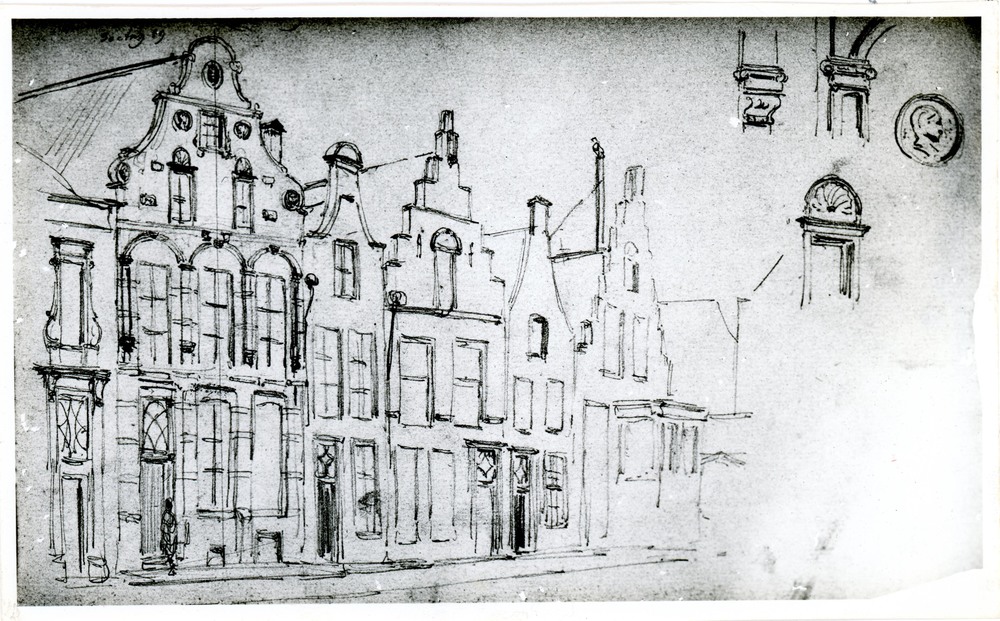 Foto, voorstellende tekening Springer, gevels , Mark...