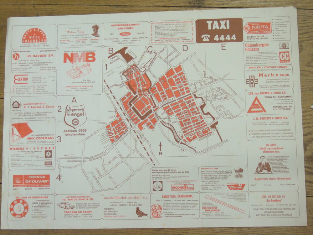 Plattegrond van Culemborg in 2 kleurendruk op papier.