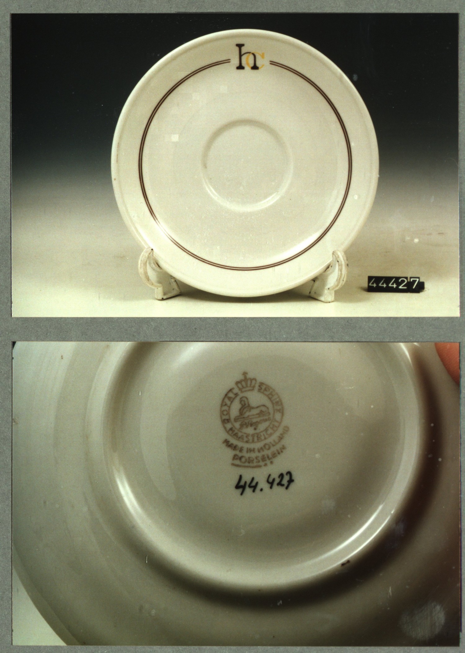Kop met opschrift, model F met decor Het hof van Hol...