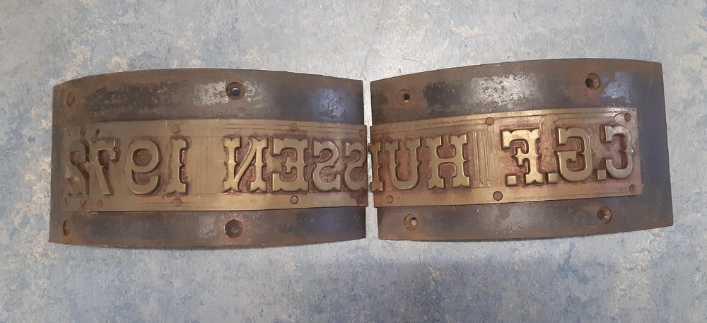 Metalen banderol in twee delen met tekst 'C.G.F. Hui...