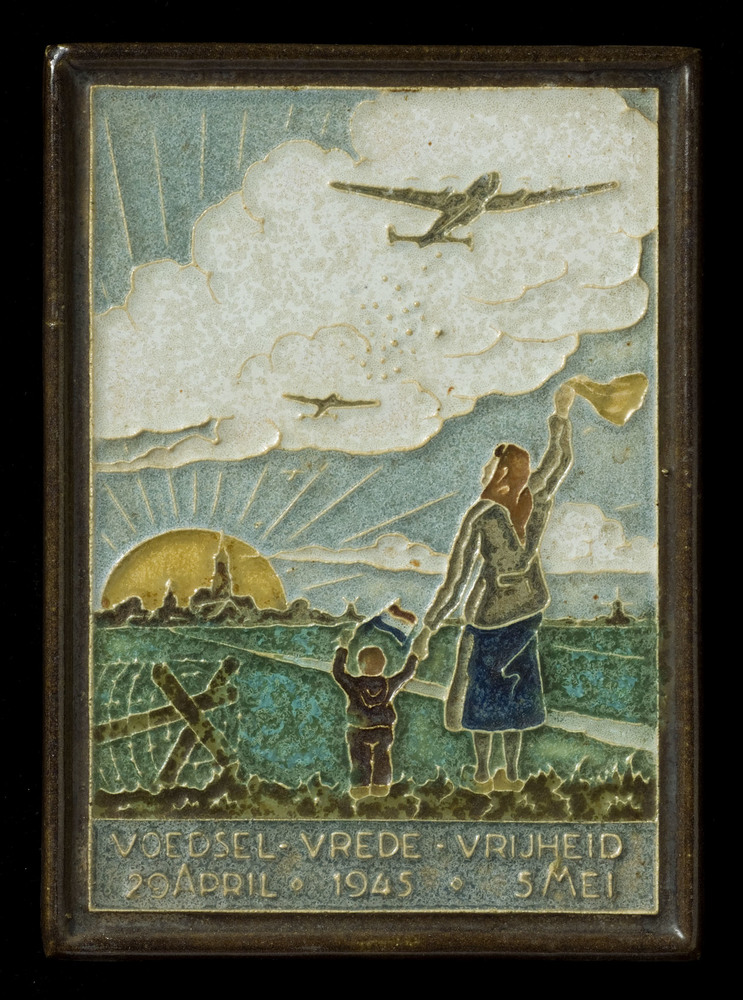 tegel van aardewerk met tinglazuur, voorstellende: v...