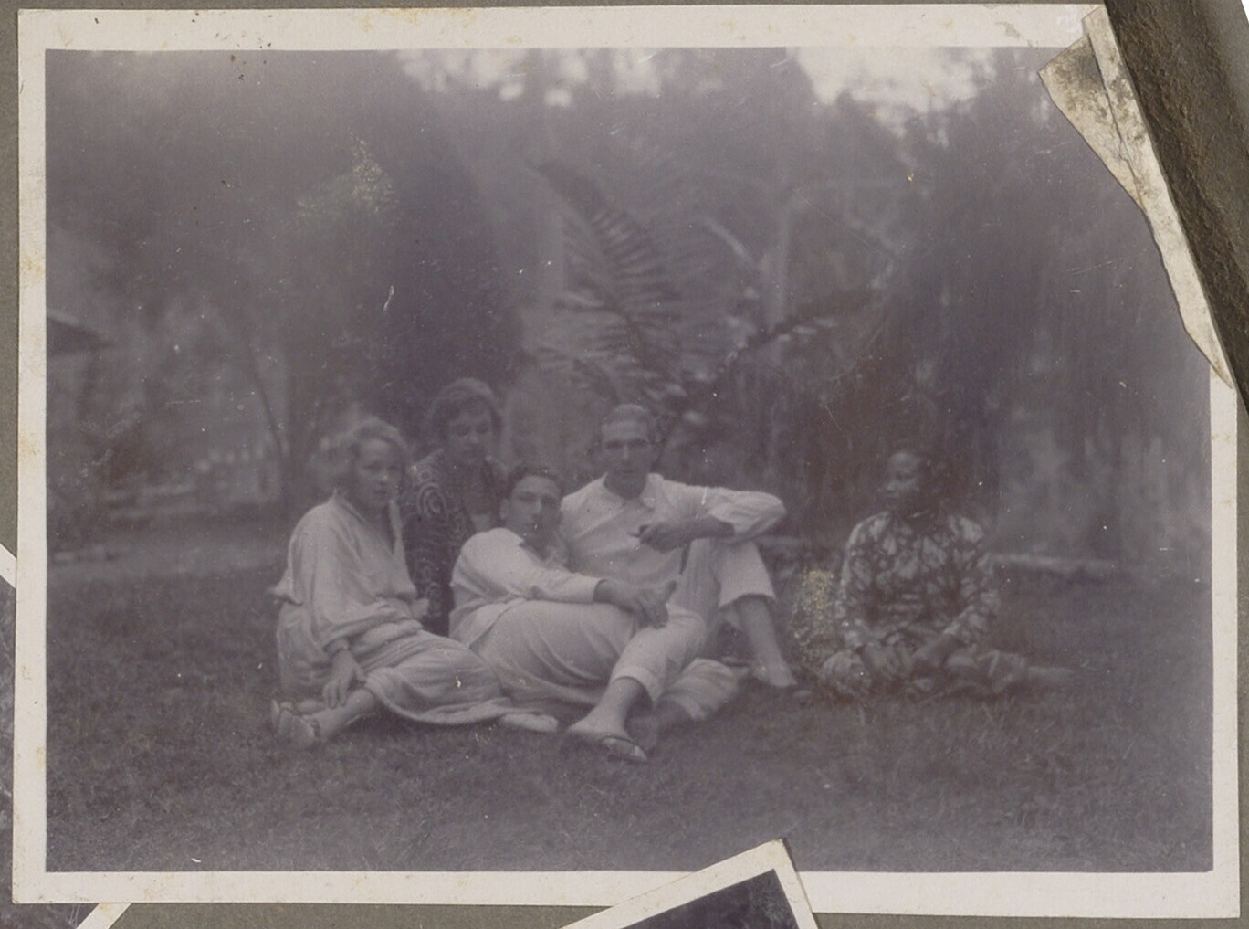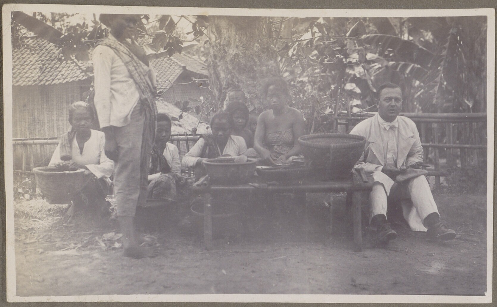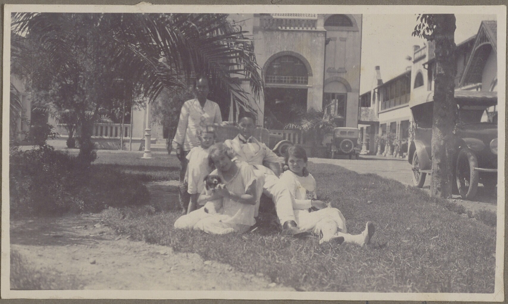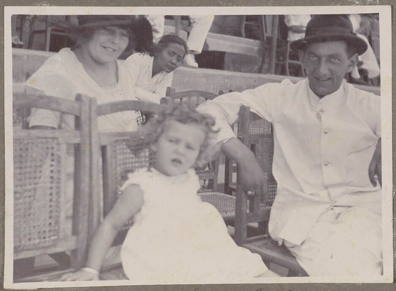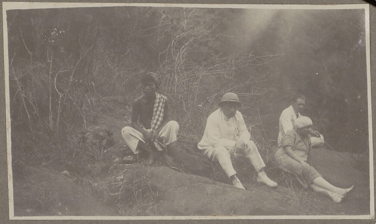 Nederlandse familie met Javaanse vrouw op een grasve...