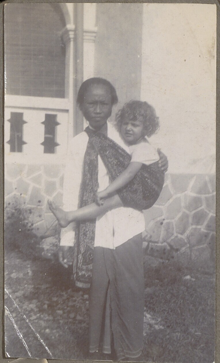 Javaanse vrouw met Nederlands meisje in een draagdoek