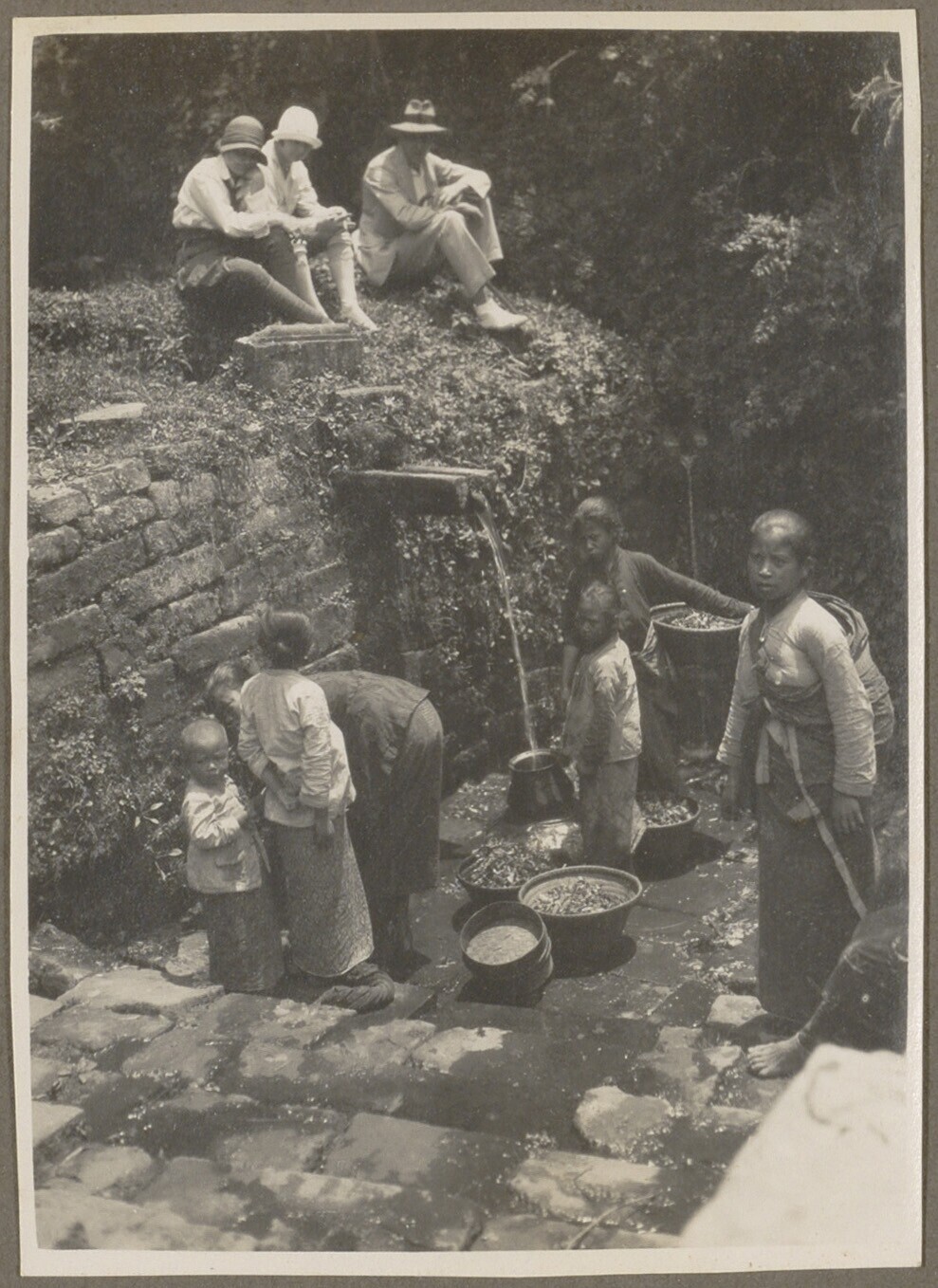 Gezelschap met Javaanse bij een rots op Java