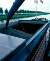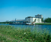 Binnenvaartschip aan de loswal om het graan op te ha...