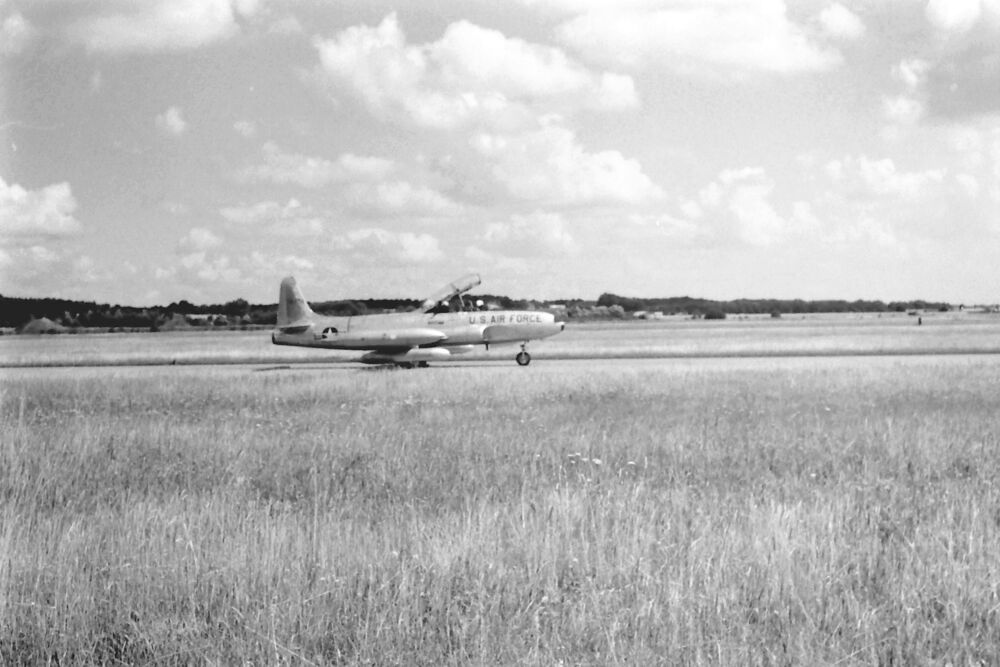 Lockheed T-33 USAF op de rolbaan.