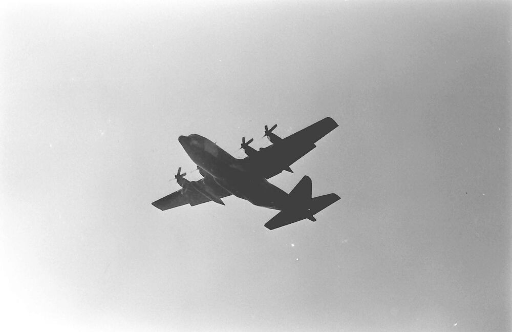 Lockheed C-130 Royal Air Force in de vlucht.