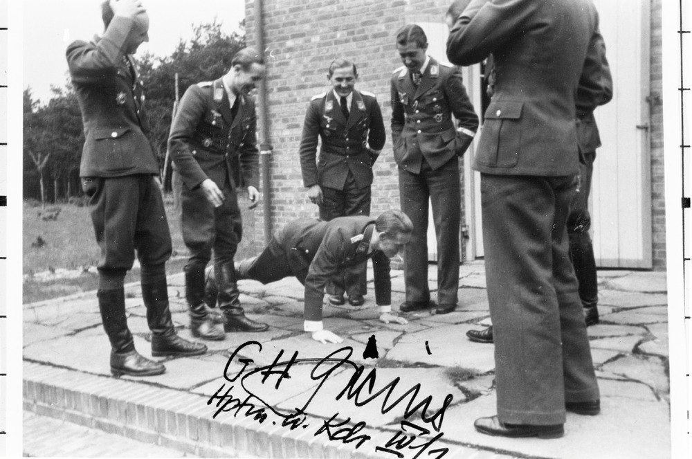 Luftwaffe officieren, een ervan gaat opdrukken