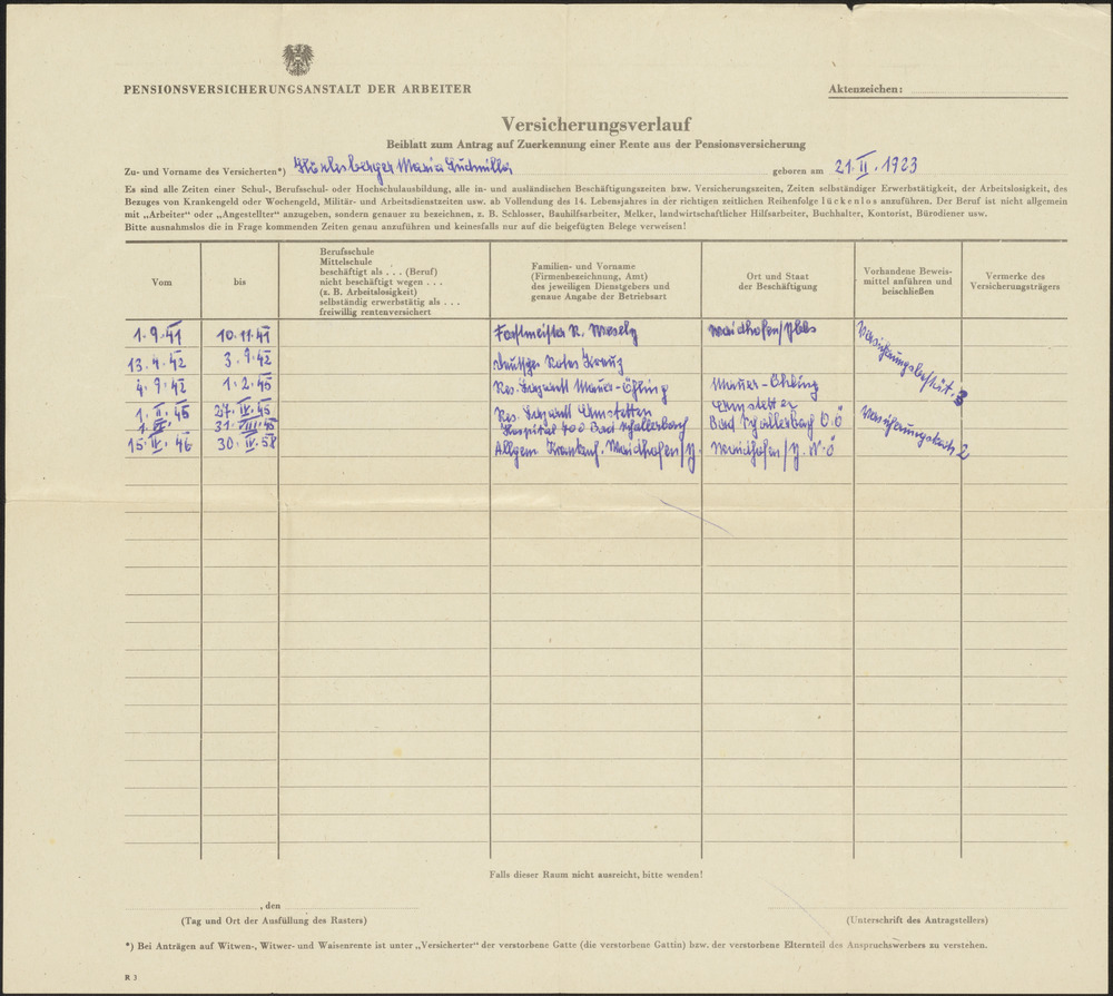 Waarschijnlijk los formulier met het arbeidsverloop ...