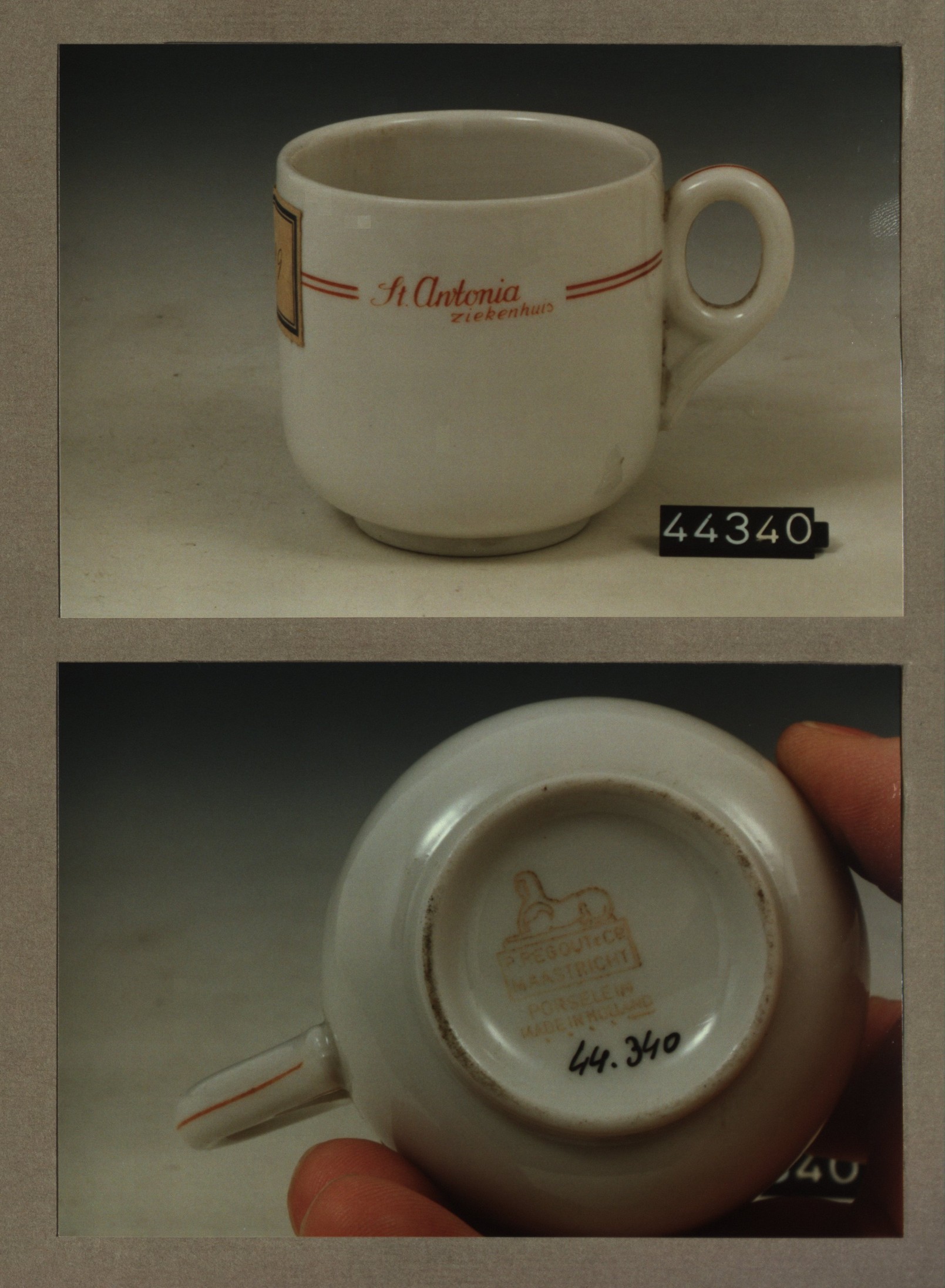 Kop met opschrift, model F met decor St.Antonia ziek...
