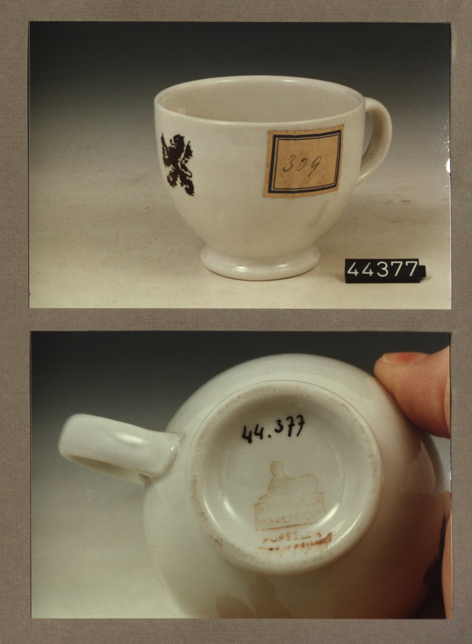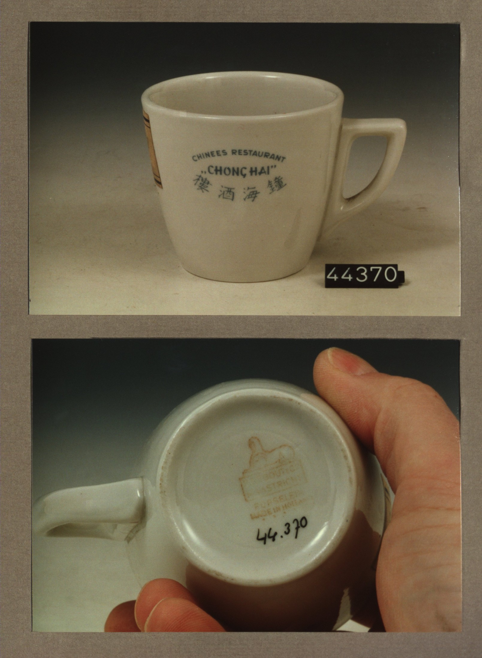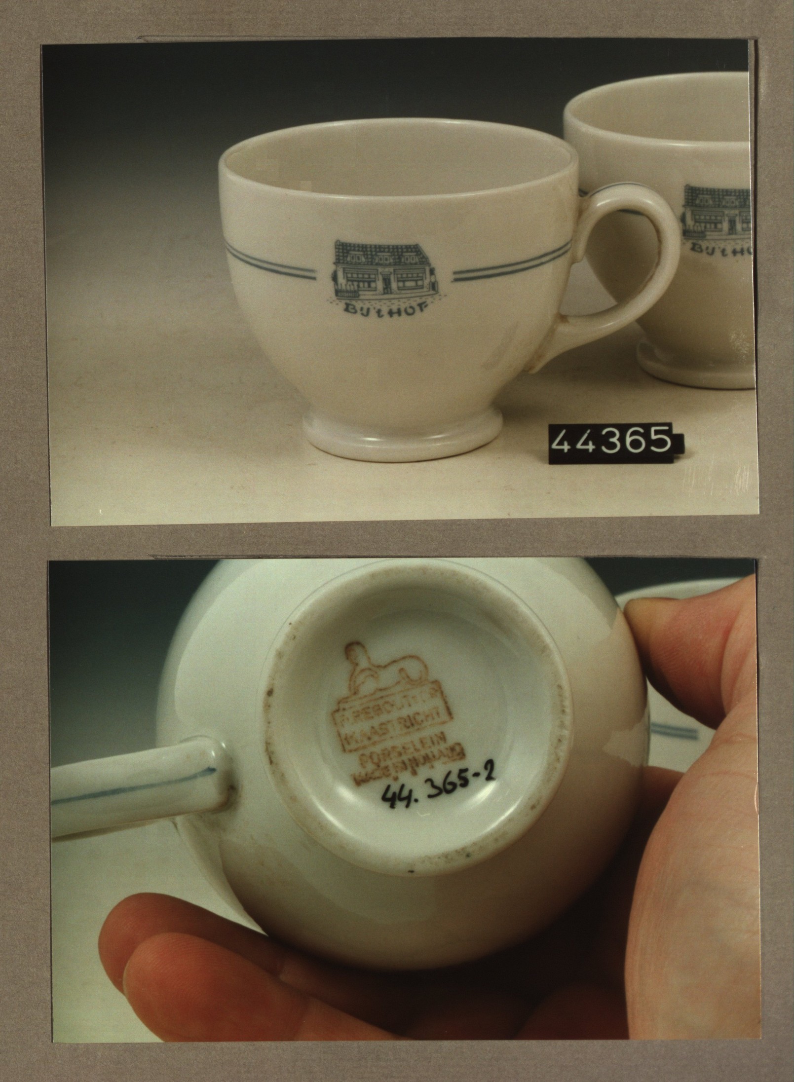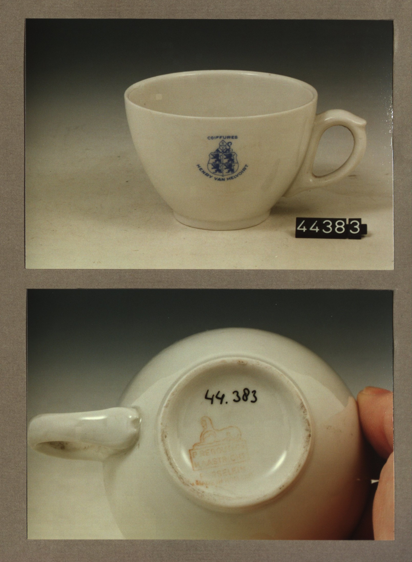 Kop met opschrift, model F met decor B en van E