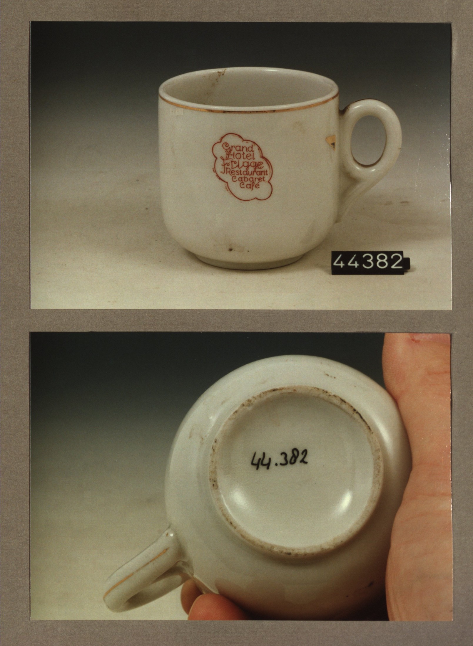 Kop met opschrift, model F met decor Frigge Grand Hotel
