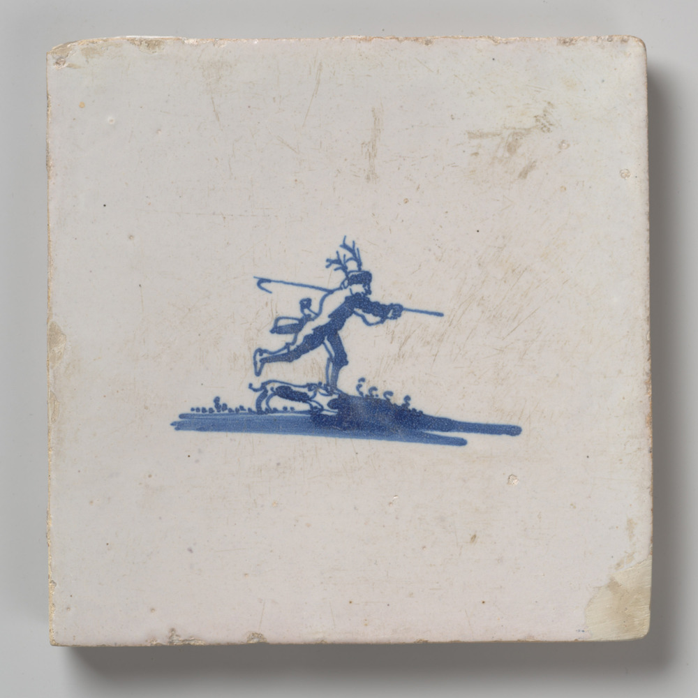 Tegel van keramiek met tinglazuur, voorstellende: He...