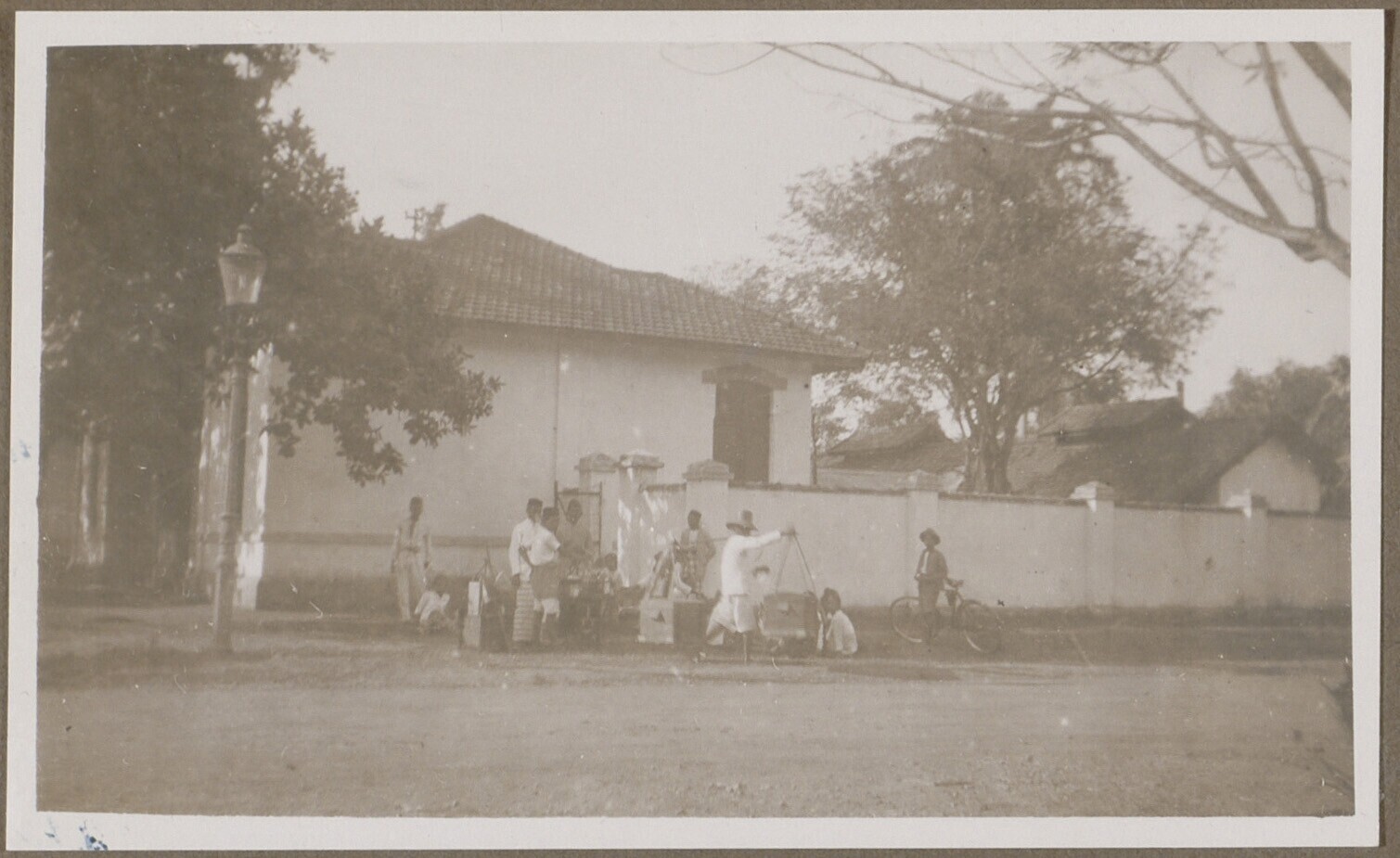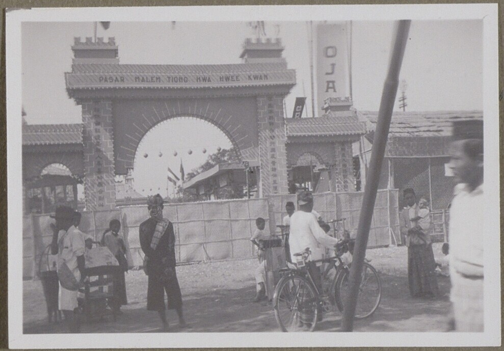 Gebouw van Javasche Bank en passerende boer met een ...