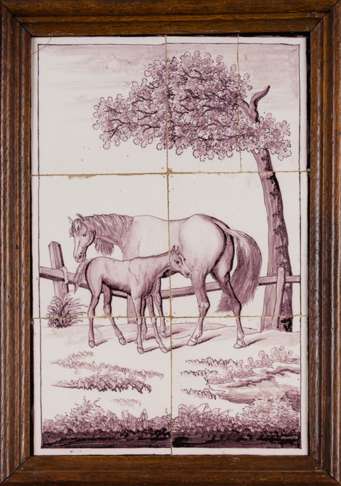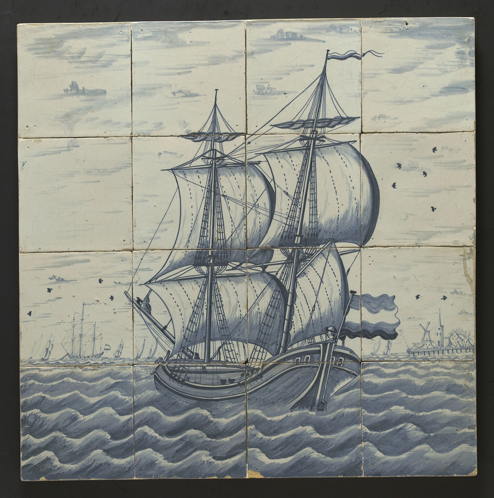 Tegeltableau van keramiek, tinglazuur, voorstellende...