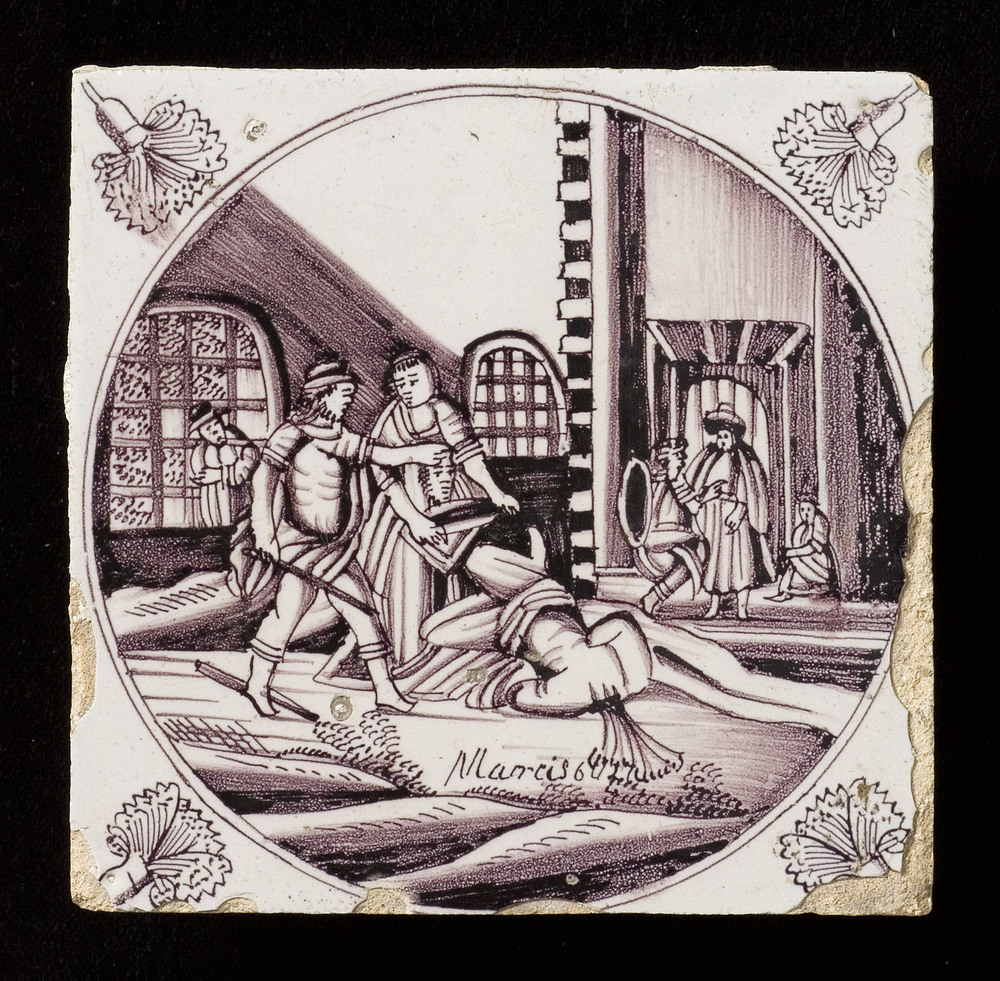 Tegel van keramiek met tinglazuur, voorstellende: Jo...