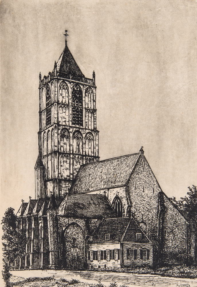 Ets, voorstellende de St. Maartenskerk te Tiel, verv...