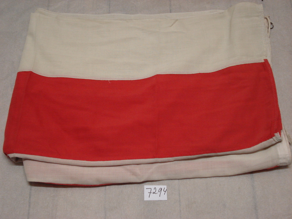 Vlag met 3 witte en 2 oranjerode banen in de boven z...