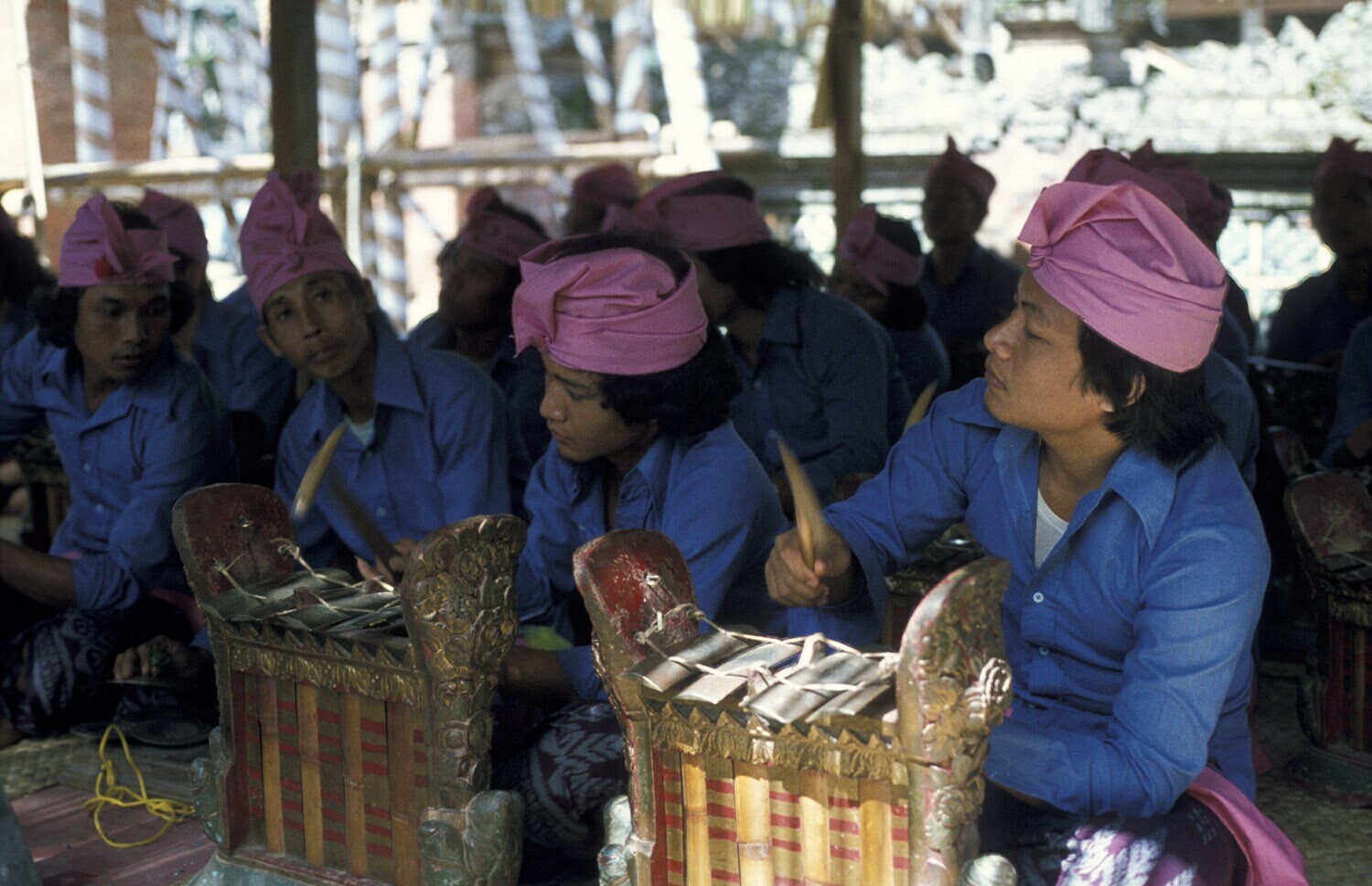 Gamelanorkest in de puri tijdens de voorbereidingen ...