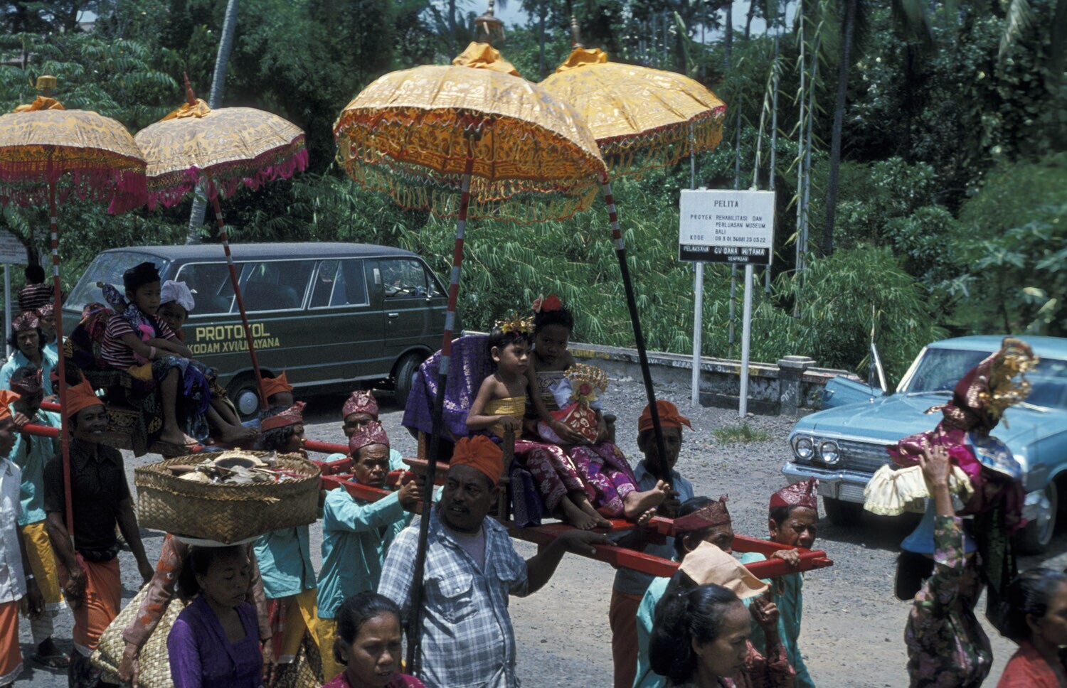 Children in sedan chairs in the procession which bri...